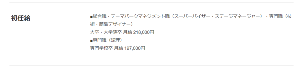 알기 쉽도록 디즈니(일본에서 정식명은 오리엔탈랜드) 대졸 신입 초임 데이터를 가져왔다.